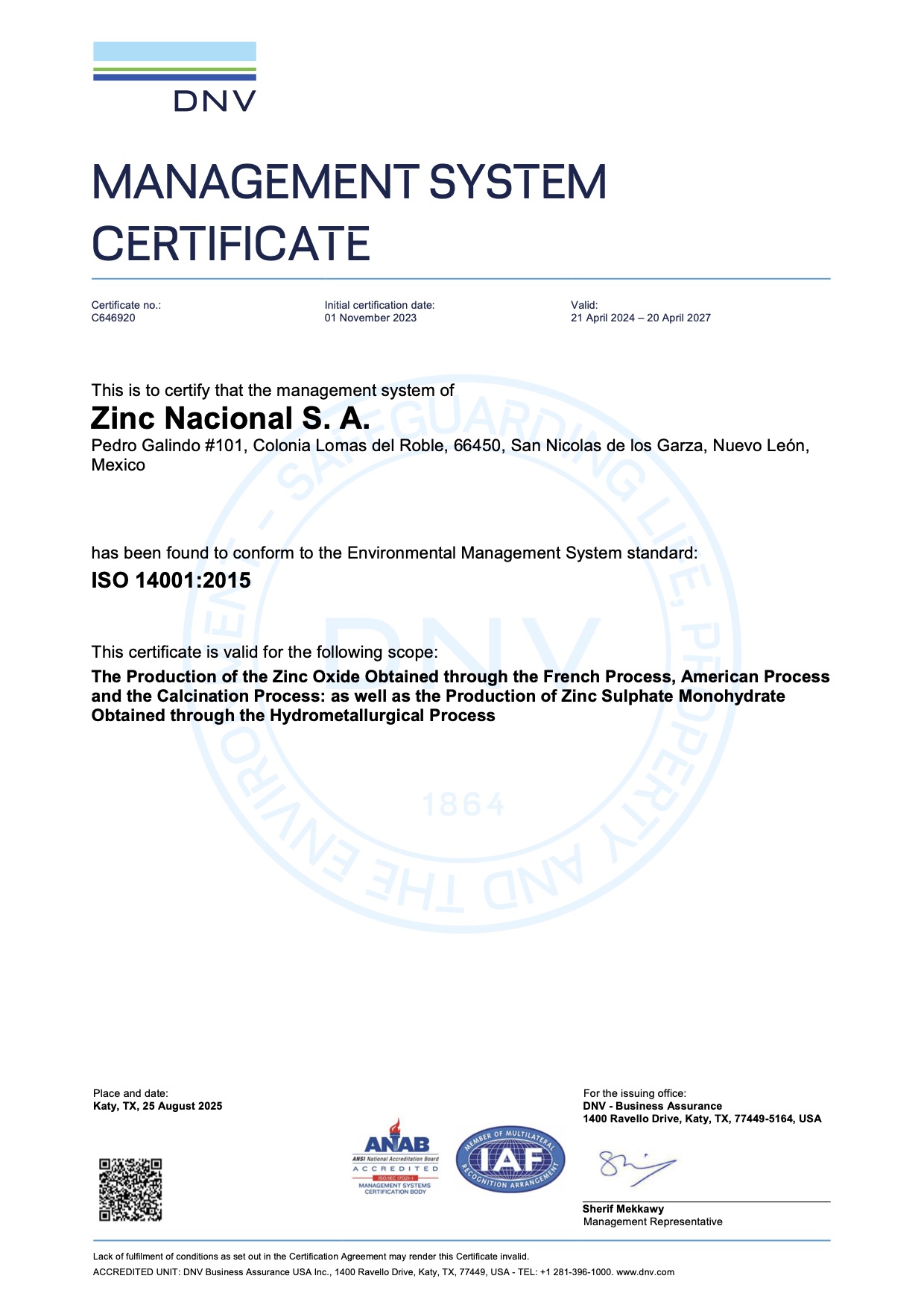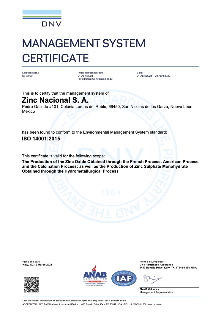 ISO 14001:2015 Certificate