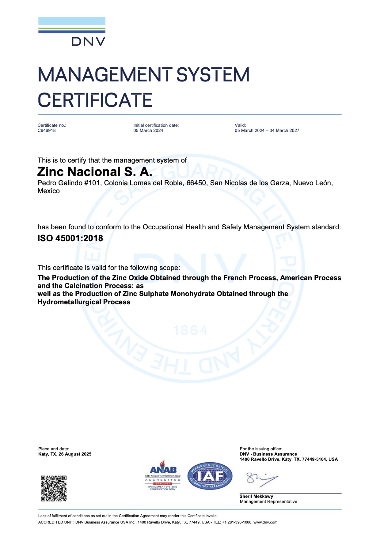 ISO 45001:2018 Certificate
